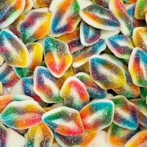 Sudėtis: cukrus, gliukozės sirupas, dervos pagrindas, dekstrozė, kvapiosios medžiagos; drėgmę išlaikančios medžiagos: glicerolis, sorbitoliai; emulsiklis: sojų lecitinas, saulėgrąžų lecitinas; tirštiklis: guma arabikas; modifikuotas bulvių krakmolas, alyvuogių aliejus, glazūravimo medžiaga: šelakas, bičių vaškas, karnaubo vaškas; augaliniai aliejai (palmių, kokosų, rapsų), vaisių ir daržovių koncentratai: citrinų, dygminų, morkų, juodųjų serbentų, ridikėlių, moliūgų, obuolių, pomidorų, saldžiųjų bulvių, vyšnių, spirulina, hibiskas; kvapiosios medžiagos, spalva: E133. Antioksidantas BHT arba BHA, rūgštys: citrinų rūgštis, vyno rūgštis, obuolių rūgštis; lipnumą reguliuojanti medžiaga: kalcio fosfatai. Gali būti pieno pėdsakų.