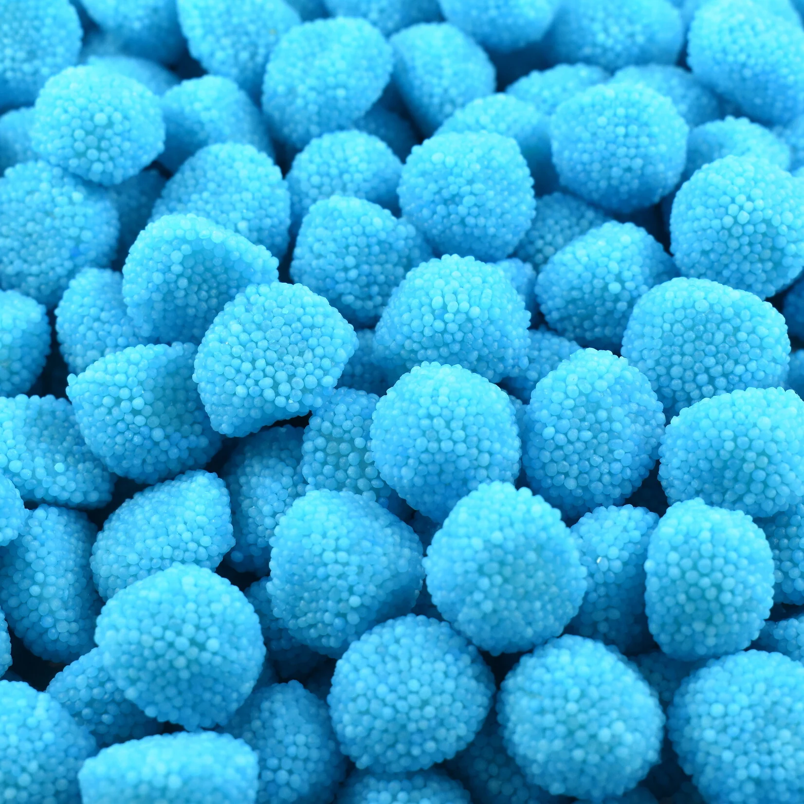 Mėlynos aviečių formos guminukai. Šie gardūs vaisių skonio guminukai padengti spalvingais mini saldainių rutuliukais.