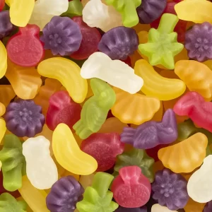 Sudedamosios dalys: cukrus, gliukozės sirupas, invertuotas sirupas, želatina, stingdantis agentas: pektinas; Modifikuotas kukurūzų krakmolas, bulvių krakmolas